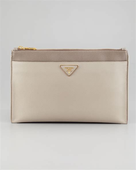 prada bicolor zip clutch bag lt graydk gray gray lyst